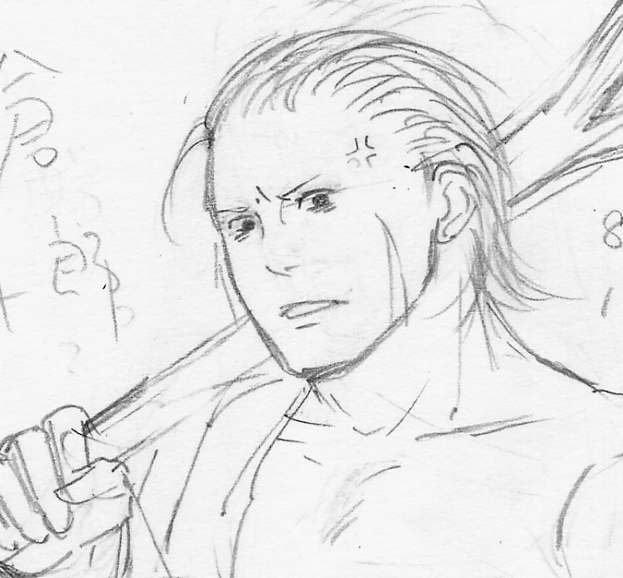 いや、絶対私の他にも撮った人いると思うんだよね。 普通にカプコンブースにいたし。 イイ思い出になりました。 さて、そのジャンフェスでBASARA的な出来事を書いておきます。 まずは慶次の森田。 もうさ、今年森田見るの何度目だろう。BASARA祭で2回、ジャンフェスでは4回くらい見たよ。 「今年は森田の年」と言っても過言ではない。 そして伊達の中井。遠くから拝みました。彼も今年2回目ですねぇ。 でも歌声は聞くことができませんでした。残念です。 最後に謙信様。 ブリーチの日番谷くんとしてステージに来ていました。 いやあ、本人もかわいくて声もスゲー好きなのですが、 テンションが高い方ですね。んもうスゲーことになっていたよ。 あら、意外やこんなもんか。 さて年末のコミケまであと少し。 ゆかり殿はどうなってるんでしょうか。 コピー本の行方が気になります。 PR 今回の下書きで一番気に入った絵。 こんばんは。甲冑子です。 さて本題に入る前に。 桔梗殿ったら新撰組の乙女ゲーって何さ?! やったら感想プリーズ。気になるね~。 んで本題。いやー、早速ペンで描きましたよ。 2P(半分)終わった。ベタ塗りもしたよ。スゲー。1日でこんなに進んだよ。 こりゃ土曜日までには間に合いそうだわ。 最近起きたこと・思ったこと。 ●H美が絵の腕を上げた。メールで見たが驚きの上達。 送ってきた絵は全て刹那・F・セイエイ。似てたな、アレは。 ●今日の会社帰り、なぜか小学生のガキんちょと 駅までの道のりをどちらが早く着けるか競うことに。勝った。 ●組織のリーダーが清麿かブチャラティだったら命をかけて戦えると思う。 ●NH○のBS2で放送された『熱中夜話 城マニア編』の制作スタッフには 間違いなくBASARAファンがいると思う。マニアの中に伊達のコスプレさんがいたし、 ナレーションは謙信様だし、BGMにもBASARAから使われていたから。 眠くなってきた。今日はジャンプ読めそうにないなぁ。