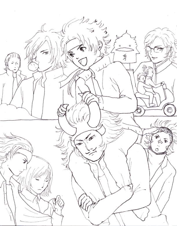 × [PR]上記の広告は3ヶ月以上新規記事投稿のないブログに表示されています。新しい記事を書く事で広告が消えます。 こんばんは。甲冑子です。 今日は表紙かポスターに使える絵を考えてみたよ。 そして下書きしてみました。 色を塗ったら全く違う絵になりそうなので、下書きを保存しておきます。 私は佐助がうまくいったかなーと。 自分の中のイメージと近い気がする。 そして左下はオクラとチカちゃんです。誰だかわかった? 桔梗殿の設定で、オクラは裁縫が得意ってのを思い出して描いてみたよ。 小十郎は何させていいかわからないのであんな顔になった。 バイクに乗ってるのは信長と蘭丸ね。 あ! 気づいたら女子がひとりもいない!!! うーん…。 とにかく、構図を考えるのにすっげー時間がかかった。 脳みそフル回転ですよ。 みんなこういう頭の重労働をいつもしてるのね~。 PR